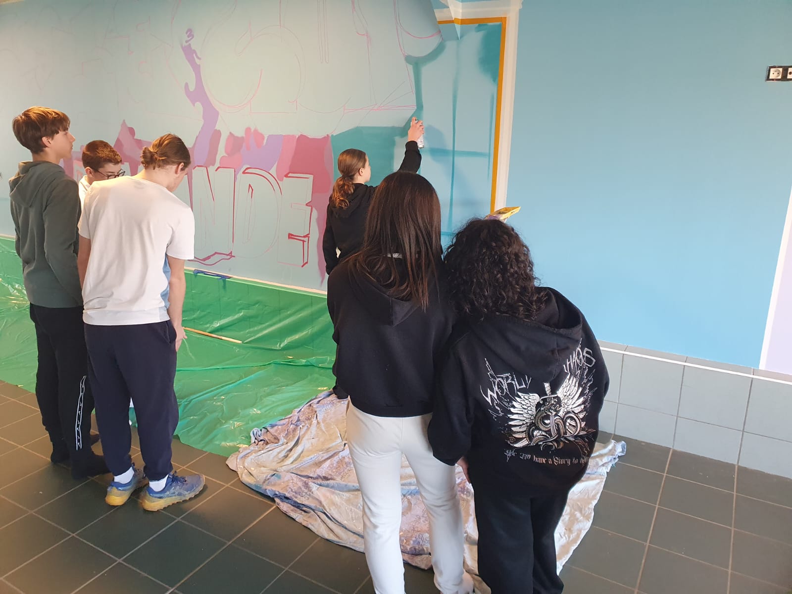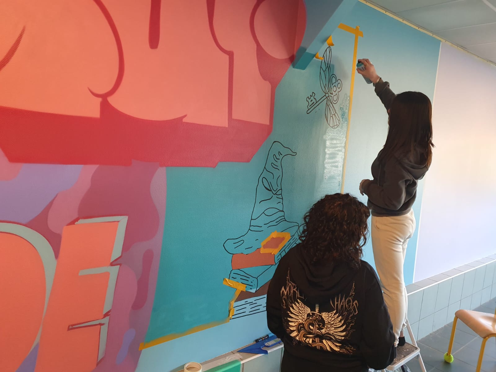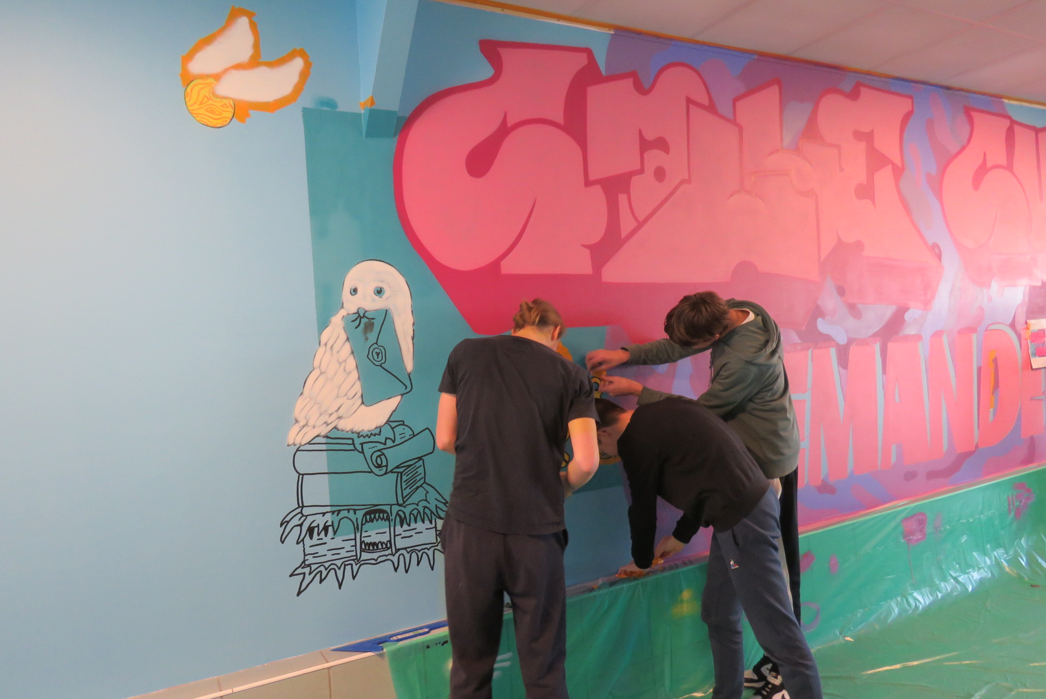Au mois de novembre et décembre, pendant plusieurs mercredis après-midis, AED et élèves ont repeint la salle, ont fait leurs premiers pas dans le street art avec l’élaboration d’une fresque, ont réalisé des plans, ont envoyé des demandes de devis, ont rempli des papiers administratifs.